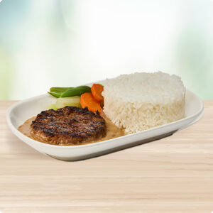 A juicy charbroiled burger patty, top with signature brown gravy with rice and vegetable sidings. Best enjoyed with sunny side-up egg, creamy cheese, toasted garlic flakes, and spring onions.