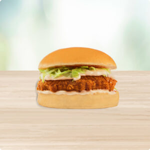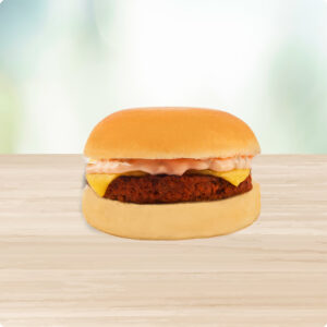 A juicy burger patty grilled to perfection topped with melted cheese slice and served in a soft burger bun with creamy burger spread.